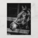 A black and white photograph of the side profile of a horse's face on a postcard.