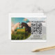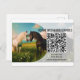 Business postcard featuring a modern, captivating horse design. Great for equine services, equine massages, veterinary care, and other horse businesses. The QR code on the front can be used for your online shop or website. Customise the text. Use the template to create your own business postcard.