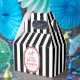 This Derby favour box has a watercolor race horse with a jockey in pink surrounded by a wreath of red roses with the saying "Bridal Shower" There is a black and white striped background. You can personalise with a name and date.
