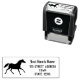 Horse return address self inking stamp for horse ranch owners and horse lovers of all kinds. Decorated with a silhouette illustration of a galloping horse. Personalise with your name, your business name or any other custom name and contact information. Show your love for horses with every imprint of your mailing address.