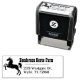 Animal themed custom self inking rubber stamp with script name, return address and a silhouette of a horse, on the left side. Great for personal and business use.