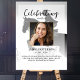 The perfect memorial poster for greeting family and friends as they enter your loved one's celebration of life. The design features a square personal photo, 5 lines of custom text and a background photo of a horse rider jumping. You can easily change this out with your own background photo . Classic yet unique - this template is so easy to personalise and will make a wonderful memorial keepsake too.