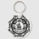 Graphic abstract motif Ink tattoo style drawing Hungarian influence, with King Arpad and a horse in the centre and watching eye at the top with drama masks on the side and palm silhouettes around the border