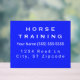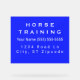 Horse themed business card in a sharp, classic shade of royal blue. This was designed for a horse trainer, but is easily tailored to suit a multitude of equine industry jobs and services. Minimal design is great for posting in feed stores, local bulletin boards, and around town. Easy to see and uncluttered for the serious, no-nonsense potential customers/clients to see and instantly know who to call