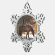 This pewter holiday ornament features a lovely golden brown horse browsing for fallen apples under the snow, against a backdrop of bare hills. This will look beautiful hanging from your Christmas tree!