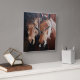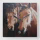 This clock was designed from a 30 by 30 inch painting of two horses by Ohio Artist Terri Meyer, which is the second in a series of 5 horse paintings using a palette knife.