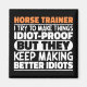 Funny Horse Trainer Sayings "Horse Trainer I Try To Make Things Idiot Proof But They Keep Making Better Idiots". Grab this Funny Horse Trainer design as a funny gifts for an awesome mum, dad or friend.