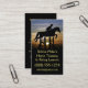 This is an eye-catching business card of a horse rider jumping over a hurdle at sunset. Change the front of the business card to reflection your name or business name, phone contact and email information. The back I have listed possible services, but is meant to be customized with what your specialty is and what you offer.