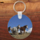 A gorgeous picture of horses with a brilliant blue sky and green grass.