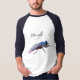 This shirt is decorated by a wildly coloured horsefly in fluorescent blues and pinks, on a background of white. But beware. He bites!
