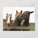 Two horses and a mule acting silly, goofy, hamming it up in hopes of more bits of apple photo postcard