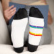 Show your love for horses and science in style! These vibrant crew socks feature a playful graffiti-style rainbow nucleotide blast with a black hoofprint overlay on the outer right top. The left sock sports a subtle logo at the cuff, while the "Two Sisters" stripes across the foot split the rainbow into two vivid sets of colors-red, orange, yellow and green, blue, purple. Perfect for equestrians, science enthusiasts, rainbow lovers, and anyone looking for a unique, eye-catching gift!
