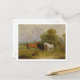 Horses Grazing: Mares and Foals in a Field (oil on Postcard