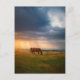Horses grazing on stormy day postcard