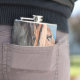The flask itself is fine. It’s a cheap flask, obviously bought in bulk, however am prepared to overlook that. Given that it is a personalized item, I would have liked to have seen gift boxing instead of the generic packaging. Terrible printing, and/or quality. It’s a cheap, tacky vinyl. It is not cut straight and is also applied in a way that it is overhanging the bottom, causing the glue to catch on items and it will eventually roll and tear, damaging the wrap.