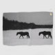 Horses On Snow - Landscape photograph in black and white of two horses walking across a snow covered field.