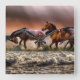 Horses Running in Ocean Surf at Sunset Square Wall Clock