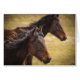 A close up colour photographic image of two horses one in the foreground is in focus, and the one in the back ground is just slightly out of focus for a nice effect. Both horses are a dark brown which is complimented by the golden grass field in the background. There is a very earthy, rural country feeling to this image and it is finished with a nice vignette to draw your eye into the photo. This product is customisable. Choose your style or options to make it just the way you like it.