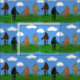 Horses with Clouds Illustration Patterned Fabric