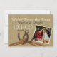 This western style save the date has the country look of horseshoes, rope and burlap, just add a photo. Change text, fonts and colours of text as needed.