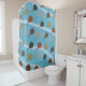 Shower curtain featuring drawings of multiple colours of horseshoe crabs in variable natural colours, more or less based on the variants these animals appear in in the real world.