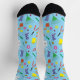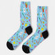 Cute blue socks patterned with tools and icons used by gardeners, landscapers, botanists and horticulturists alike.