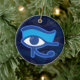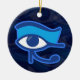 Ceramic ornament with Eye Of Horus, the symbol of protection in Ancient Egypt. This design features the Horus Eye in blue tones on faded Horus Eyes in the background.