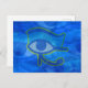 Postcard with Eye of Horus textured blue with gold outline abstract design. This design features the Horus Eye in blue tones on faded Horus Eyes in the background.