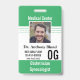 Simple Minimalist Doctor Badge on white and green. The template has space for basic information like name, medical centre name, address, ID, position, QR code, or barcode. Click on "personalise this template" for product customisation.