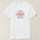 Staff t-shirt for a hospitality company. Add the name of the Staff Member to create a personal company shirt for your employees to wear when with guests. Great hospitality business t-shirt.