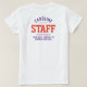 Smaller Graphics Option. Staff t-shirt for a hospitality company. Add the name of the Staff Member to create a personal company shirt for your employees to wear when with guests. Great hospitality business t-shirt.