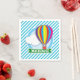 Cool, colourful kid's red, green, blue, pink, purple, & yellow Hot Air Balloon design on sky Blue & White Stripes pattern. Perfect gift for baby, toddler, kids, children, teens, or adults! Personalised the design by adding a child's name or custom text. Visit our store, Birthday Party House, for more great customisable boy and girl products!