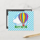 Cool, colourful kid's red, green, blue, pink, purple, & yellow Hot Air Balloon design on sky Blue & White Stripes pattern. Perfect gift for baby, toddler, kids, children, teens, or adults! Personalised the design by adding a child's name or custom text. Visit our store, Birthday Party House, for more great customisable boy and girl products!