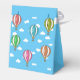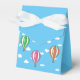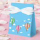 Colourful Hot Air Balloon Favour Box. Blue light sky with little clouds and 6 differently coloured hot air balloons is a perfect gift for anyone who likes being in the air and travelling throughout the sky.
