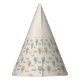 Top off your little one's first birthday look with this absolutely adorable hot air balloon party hat, featuring an all-over pattern of delicate watercolor balloons in dusty blue and sage green drifting among soft cream clouds. The playful phrase "Soaring Into One" paired with your child's personalised name in elegant forest green script wraps around the top, making this hat as charming to photograph as it is fun to wear. The warm neutral cream base and whimsical repeat print create a cohesive, boutique-quality accessory that elevates every birthday photo and smash cake moment. Fully customisable with any name, it coordinates beautifully with the entire hot air balloon first birthday party collection. Whether worn by the birthday child or the whole guest crew, this hat turns every snapshot into a memory worth framing.
