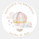 Hot Air Balloon Hearts Birthday Classic Round Sticker. Personalise with your info.