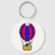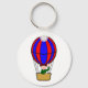 Riding in a hot air balloon is a lot of fun. You are floating away. This design features a great looking hot air balloon. The balloon itself is red and blue. In the basket is a solitary person who is smiling and waving. This hot air balloon design looks great on this keychain. Perfect for yourself or as a gift