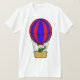 Riding in a hot air balloon is a lot of fun. You are floating away. This design features a great looking hot air balloon. The balloon itself is red and blue. In the basket is a solitary person who is smiling and waving. This hot air balloon design looks great on this mens t-shirt. Perfect for yourself or as a gift