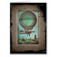Vintage futuristic artwork by French artist and illustrator Albert Robida. 19th century picture depicts hot air balloonist flying over masted ships in port.