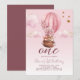 Hot Air Balloon Pink Floral 1st Birthday Invitation