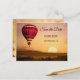 A lovely romantic Save the Date postcard featuring a hot air balloon over a dreamy landscape at sunset. The back side shows a chequered design with gold printed effects. If you do not need that, you can delete it.