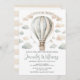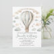 Embark on an adventure with this adorable baby boy shower invitation featuring a sweet watercolor teddy bear soaring in a cream hot air balloon. Set the tone for a journey of joy and celebration.