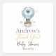 The cute baby shower invitation features a hot air balloon with a teddy bear, bird, and clouds.