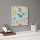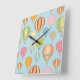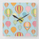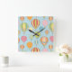This hot air balloon patterned clock features solid, striped, and floral hot air balloons floating in a blue sky. Perfect for a hot air balloon-themed bedroom or nursery. Other matching decor items available.