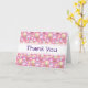 Thank you card with a cute and whimsical pattern. Hot air balloons and cute clouds with faces among stars and hearts and balloons. Soft pastel colours make up this adorable design. A white square with a pink border layered over top with your text inside.