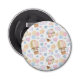 Bottle opener with a cute and whimsical pattern. Hot air balloons and cute clouds with faces among stars and hearts and balloons. Soft pastel colours make up this adorable design.