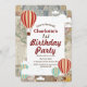 Hot Air Balloons & Clouds World Travel Birthday Invitation