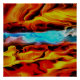 An acrylic pour-style abstract painting hand-painted in orange and red with blue as a complementary colour. Art with an organic and natural perspective that acts as a great addition to a decorative style or colour theme. The interpretation is made by the viewer.