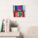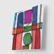 These ceramic tiles feature art selected from the work of my wife Carolyn. They are adapted from her original abstract paintings, drawings and prints. I hope you find something that speaks to your heart. This painting is all rectangles except for the green circle of course.