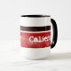 Caliente means hot printed on dark red and black mug. Personalise with a name for a truly unique gift for the coffee or tea drinker